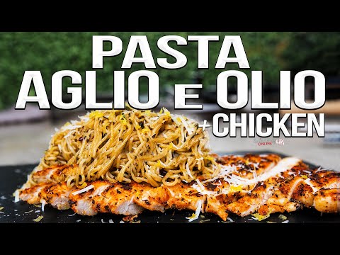 Chicken Aglio }}- This recipe for pasta aglio e olio with grilled blackened chicken makes the best quick & easy dinner! SUBSCRIBE: http://bit.ly/stcgsub | MERCH: ...