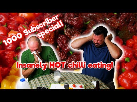 Eating the insanely hot 7Pot Choc Brainstrain - 1000 Subscriber special - 7 Pot Chilli - Skip to 6:06 if you just want to see us eating the Chocolate Brainstrain I love my spicy food...but there are limits! To celebrate 1000 subscribers, I thought I would ...